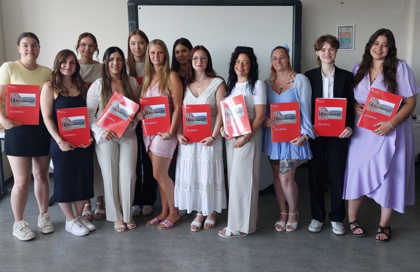 Aus der F12a freuten sich Süheda Afsar, Josie Buß, Mohamed Chouman, Tony Duong, Fadwa Hamoud, Tamara Hellfeuer, Eylül Karadayi, Joyce Klaba, Nilay Köster, Siban Malak, Lia Mettbach, Angelina Mischke, Emely Pohl, Julina Pott, Emin Prekazi, Lisa-Marie Spiegel und lknur Tanrikulu über das bestandene Fachabitur. Foto: Kirchner/LBK
