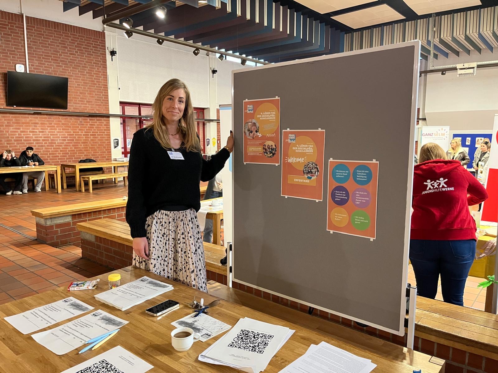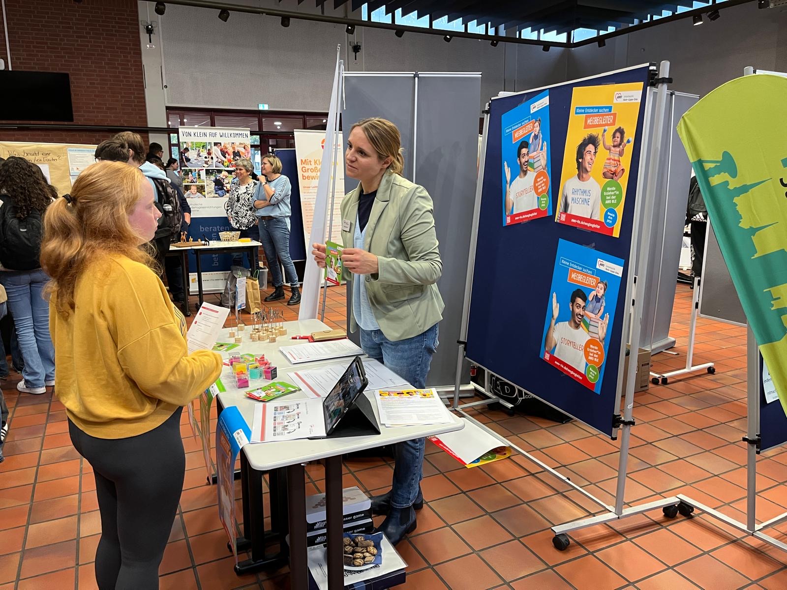 Angie Graffunder informierte gemeinsam mit ihren Kollegen über die Erzieher-, Kinderpflege- und Sozialassistenten-Ausbildung am Lippe Berufskolleg Lünen. „Die Nachfrage des Angebots war so hoch wie nie. Daran erkennen wir deutlich, dass der Austausch zwischen Schule und Ausbildungsträgern essenziell ist, um den Fachkräftemangel aktiv zu begegnen“, sagte Angie Graffunder, die am Lippe Berufskolleg für die Fachschule für Sozialpädagogik und die zweijährige Berufsfachschule (Kinderpflege und Sozialassistenz) zuständig ist. Gemeinsam mit ihren Bildungsgangbeauftragten aus den sozialpädagogischen Abteilungen organisierte sie diesen Tag am Lippe Berufskolleg Lünen. Da dieser auch in diesem Jahr so gut ankam, steht bereits jetzt fest, dass er auch zum fünften Mal im Jahr 2026 stattfinden wird.